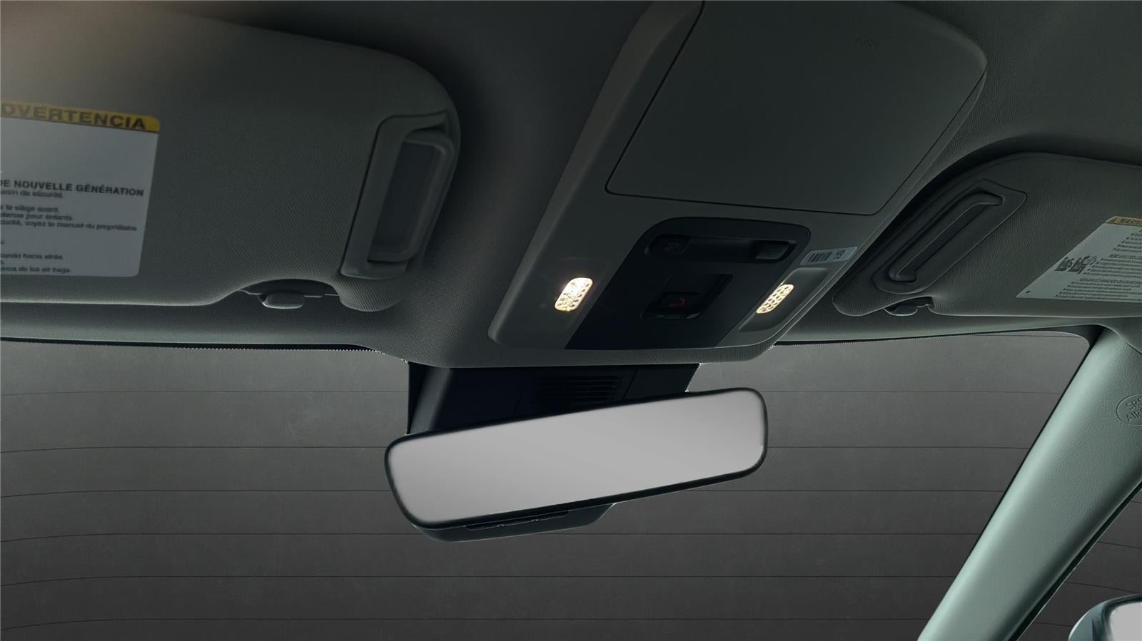 - Dual sun visors with sliding extensions and illuminated vanity mirrors