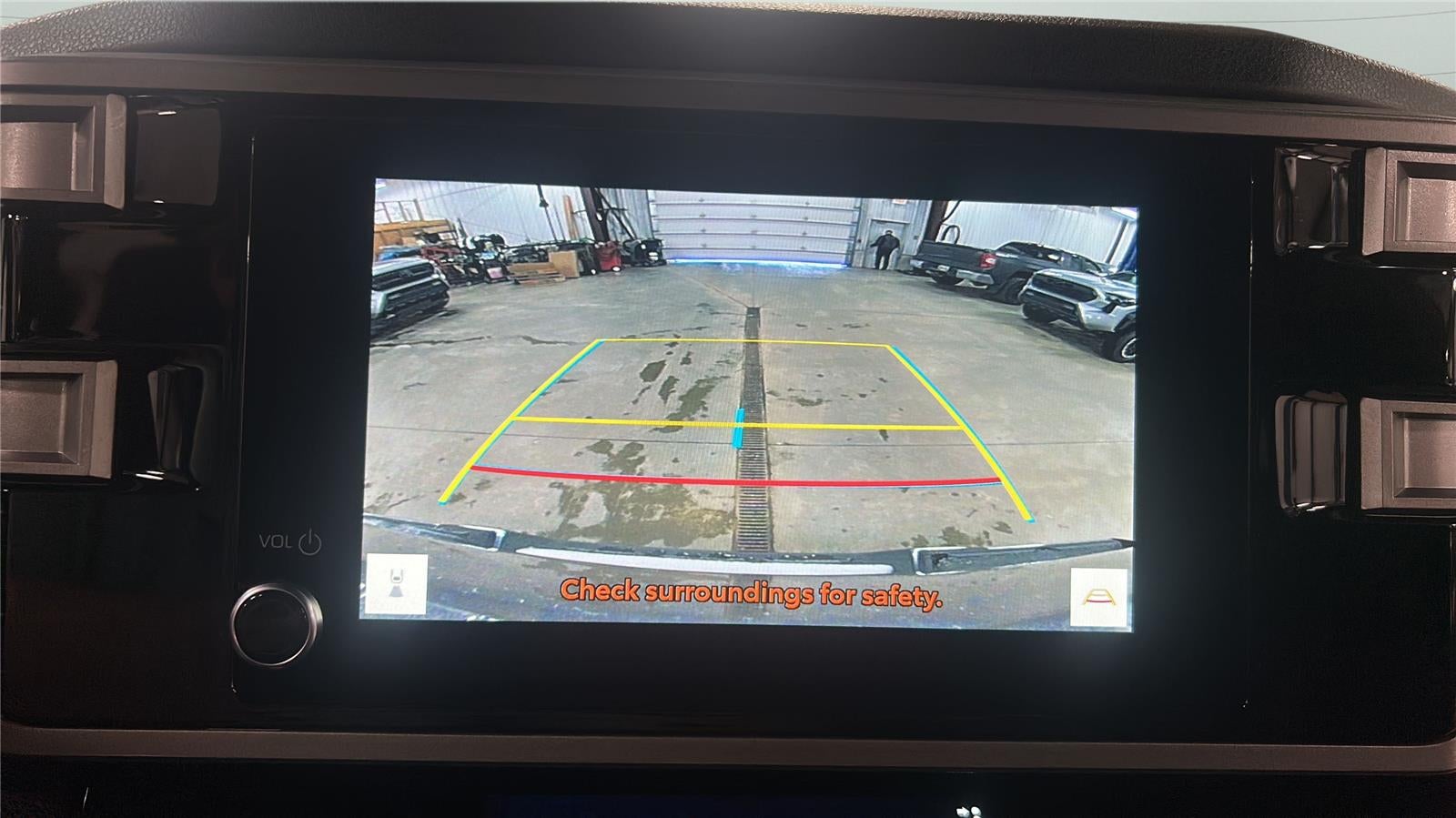 - The vehicle is equipped with a camera that displays an image of the area behind the vehicle on an interior display.