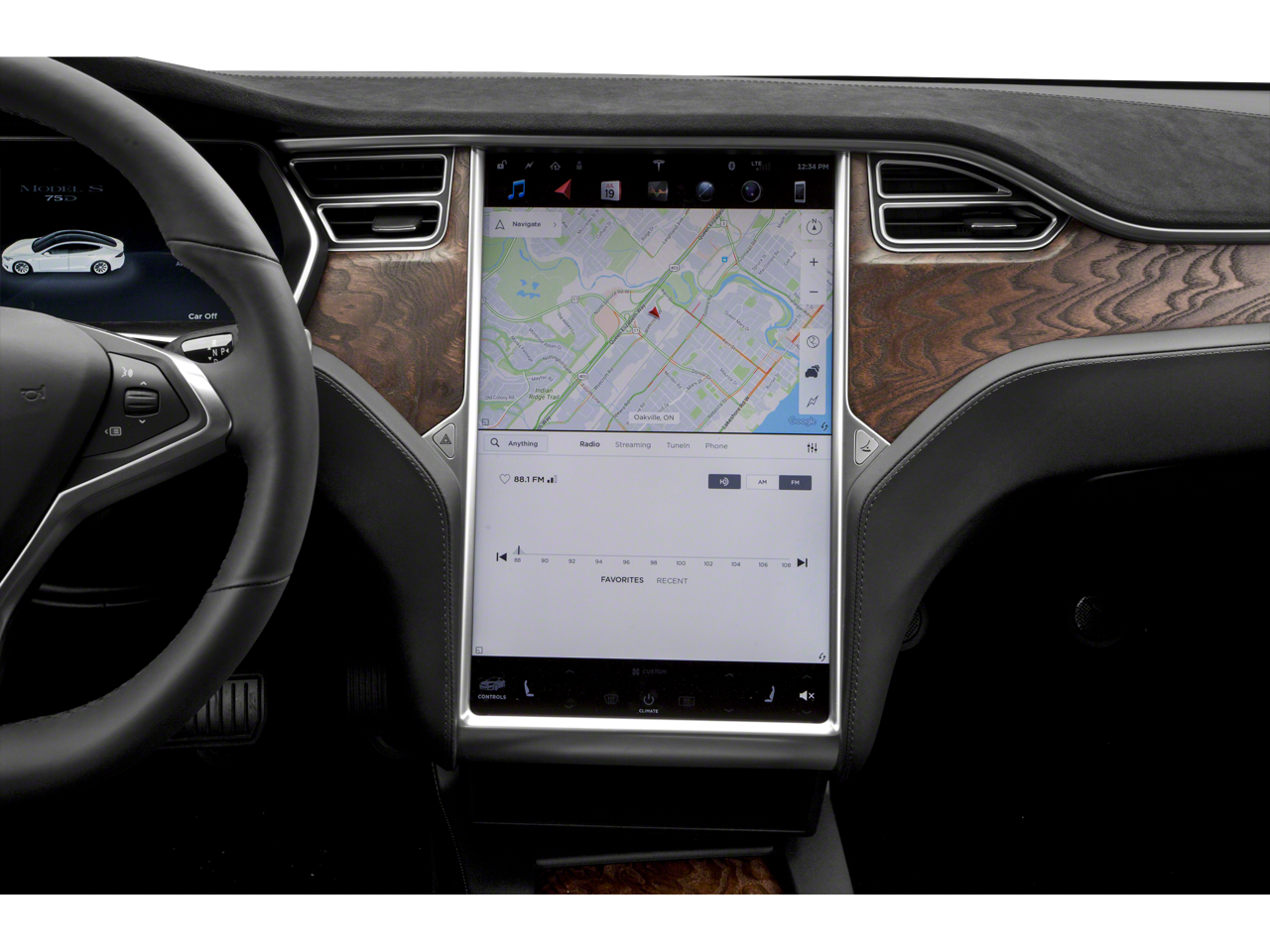 - Radio: FM w/Custom Audio System -inc: 17" capacitive touchscreen, onboard maps and navigation w/free updates for 7 years, WiFi and internet connectivity, GPS enabled HomeLink, hands free talking w/Bluetooth®, voice activated controls, 2 USB ports for media and power, 11 speakers w/neodymium magnets, 8" subwoofer and XM satellite radio capability