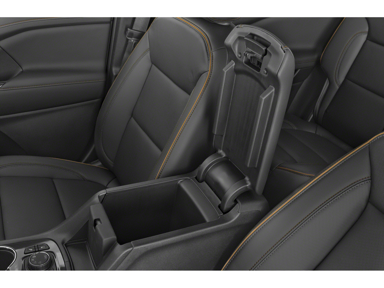 - front center with 2 cup holders and storage