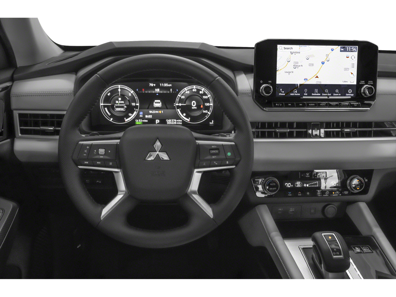 - Radio: AM/FM 9" Smartphone Link Display Audio -inc: navigation system, Apple CarPlay and Android Auto, SiriusXM satellite radio w/90 day SXM All Access and SXM Traffic & Travel Link subscription, HD Radio, Mitsubishi Connect w/safeguard and remote services and 24 month free trial (mobile app enrollment required), steering wheel audio and phone controls w/voice recognition, front USB-C and USB-A port, 6 speakers and Bluetooth® wireless technology