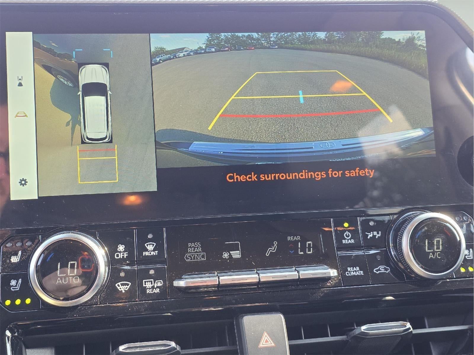 - The vehicle is equipped with a camera that displays an image of the area behind the vehicle on an interior display. The camera is equipped with its own washer.